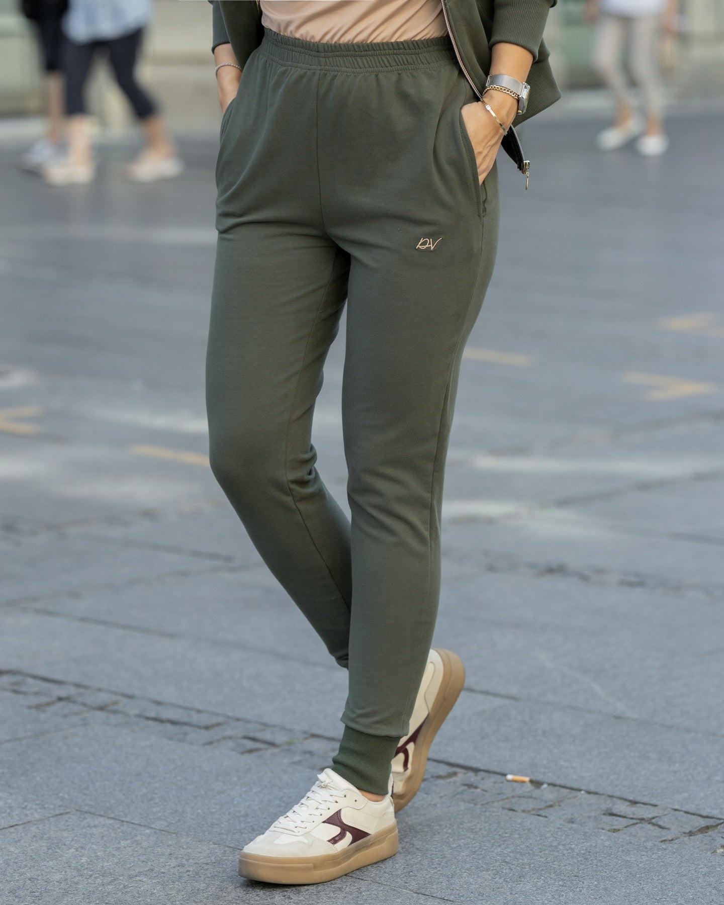 Donji deo trenerke od brušenog pamuka u maslinastoj boji, nestvarno mekan i prijatan za nošenje. Osim donjeg dela u ponudi imamo i duks jaknu u istoj boji koja je od punijeg pamuka ali zajedno čine savršen set.