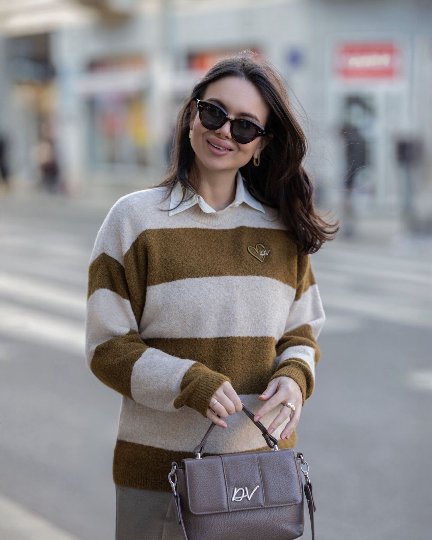 Džemper nestvarne mekoće i upečatljivog dizajna. Široke pruge čine ga izuzetno trendi, lakim za kombinovanje i savršenim izborom za svakodnevne outfite koji izgledaju wow. Diskretan, ali upečatljiv vezeni detalj daje džemperu prepoznatljiv Di Valgoni potpis i dodatnu notu autentičnosti.