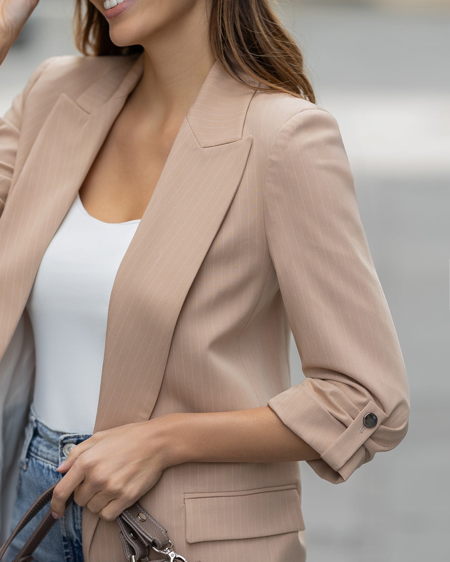 Kreiran za žene koje znaju šta žele, ovaj model sa jačim naramenicama savršeno oblikuje siluetu i daje figuri snagu, eleganciju i sigurnost u svakom koraku. Precizno krojen, prati liniju tela bez suvišnih detalja, ostavljajući utisak čistog, sofisticiranog luksuza. Kompletno je postavljen i izrađen od kvalitetnog štofa. Premium tkanje materijala i vrhunska završna obrada čine da ovaj komad izgleda besprekorno-bilo da ga nosite uz jeans za dnevnu varijantu ili kao deo elegantnijeg outfita. Podvijeni rukavi dodatno naglašavaju njegov moderni karakter.