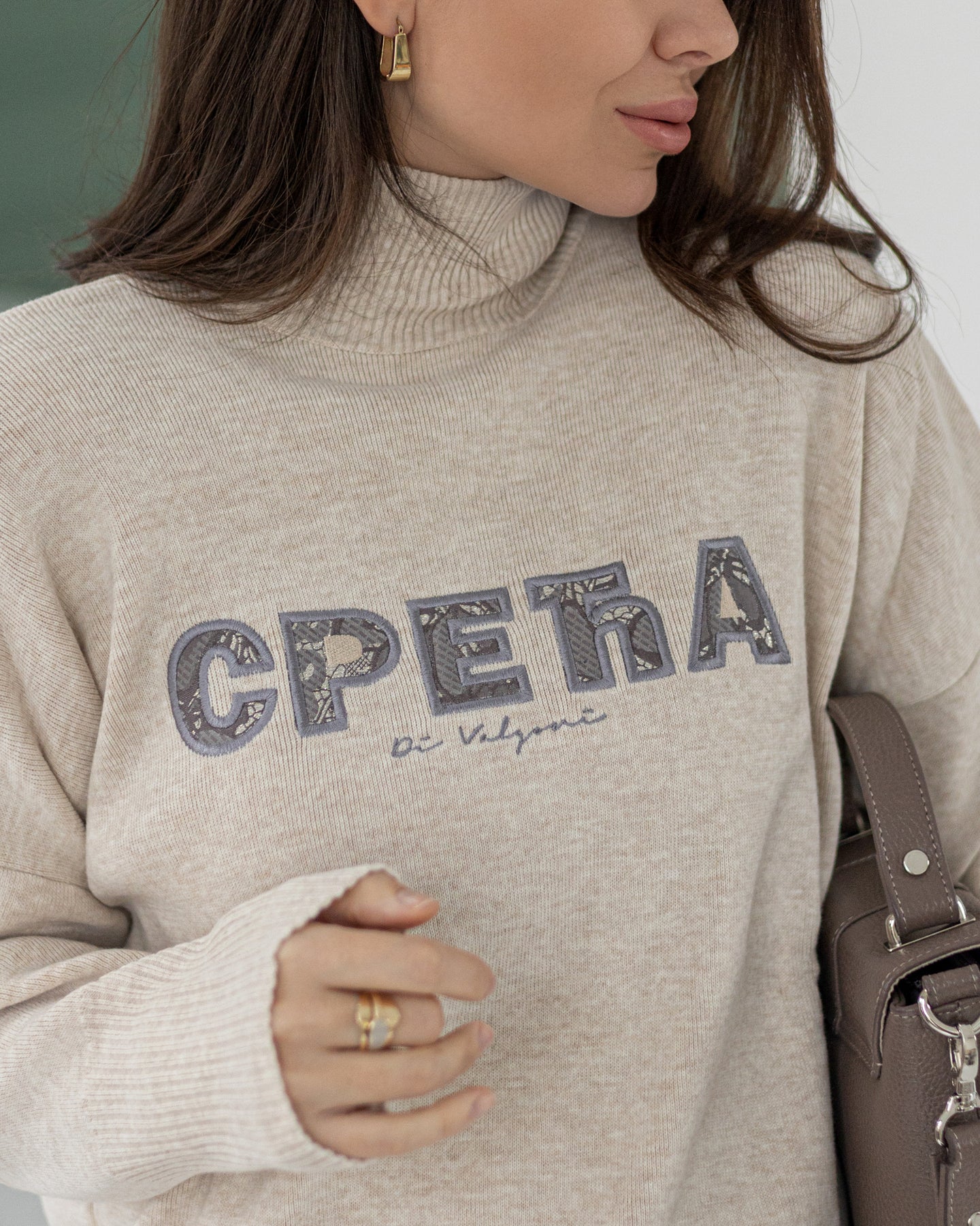 Jesenji džemper glatkog tkanja, oversized kroja sa vezenom aplikacijom na sebi predstavlja jedan preudoban komad u kome ćete se osećati udobno i lagano. Sirovinski sastav 70% pamuk, 30% poliester. Dužina džempera 70 cm, dužina rukaca 65 cm, poluobim 70 cm.