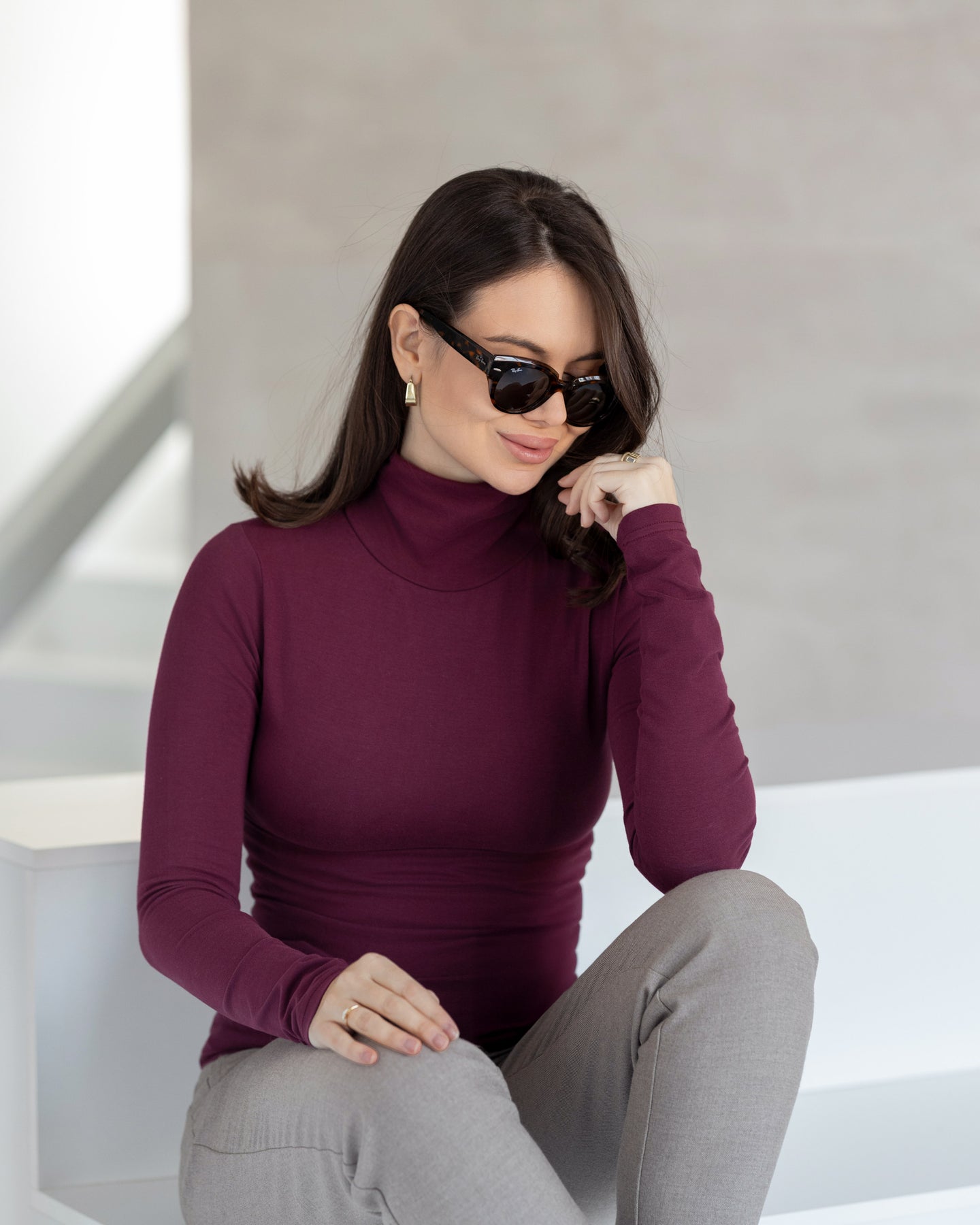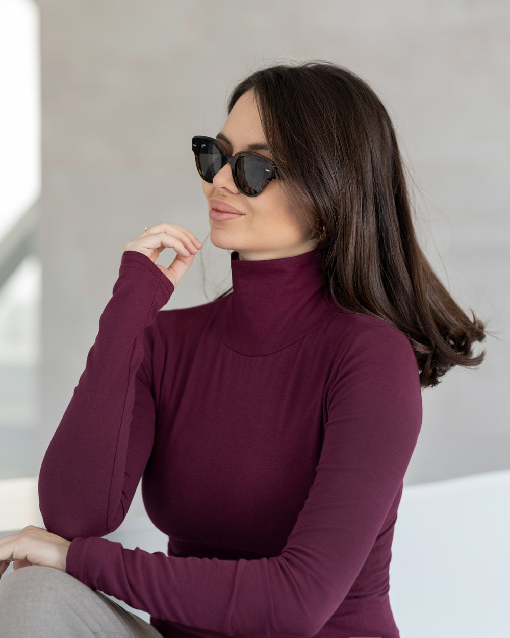 Bordo rolka od organskog pamuka nestvarne mekoće pod rukom, savršeno prianja uz vaše telo i stvara vam osećaj udobnosti i lakoće. Uski rukavi izuzetno dugog kroja daju joj na ženstvenosti. Kragnu možete podvrnuti da bude polu-rolka (preporuka je na unutra).