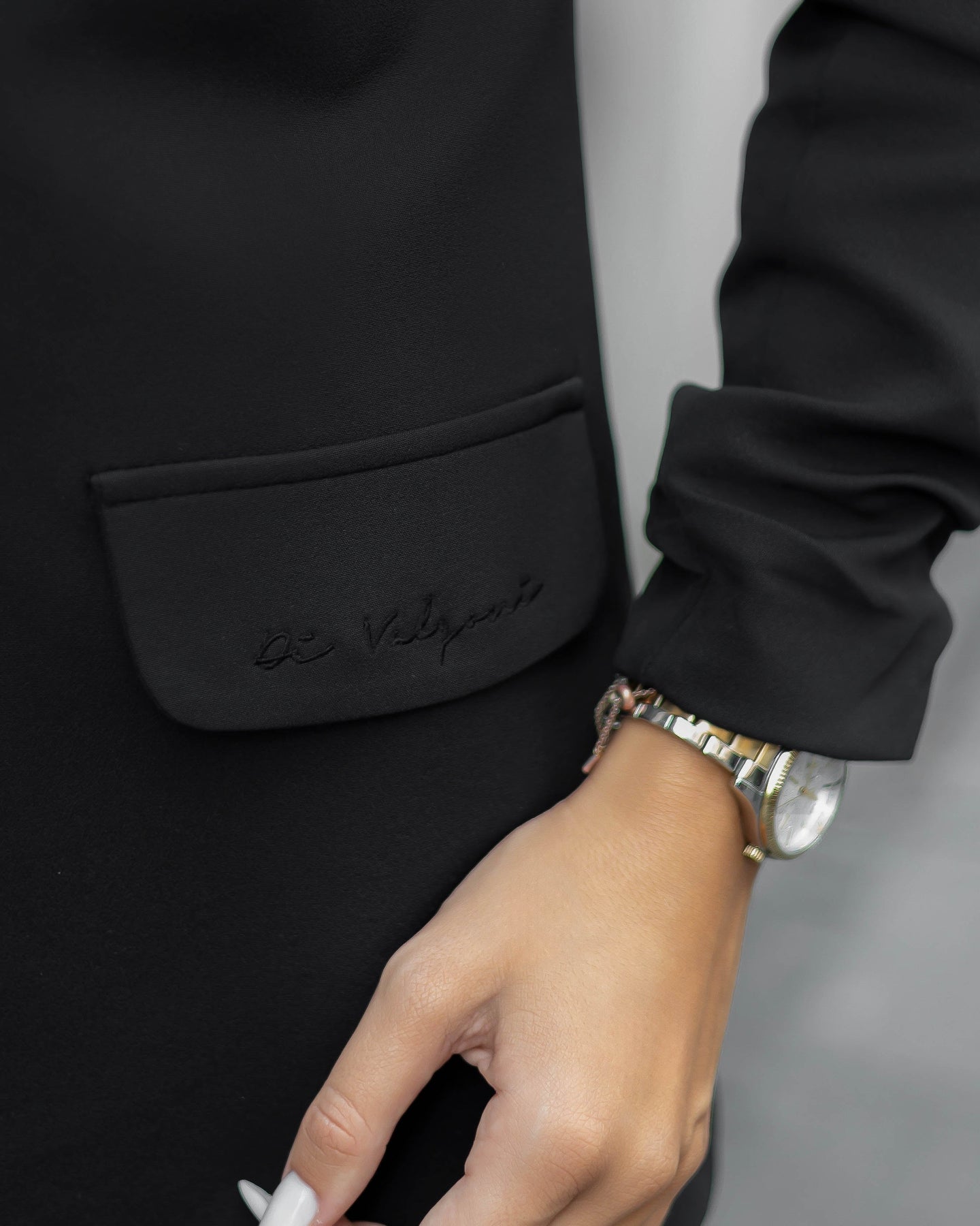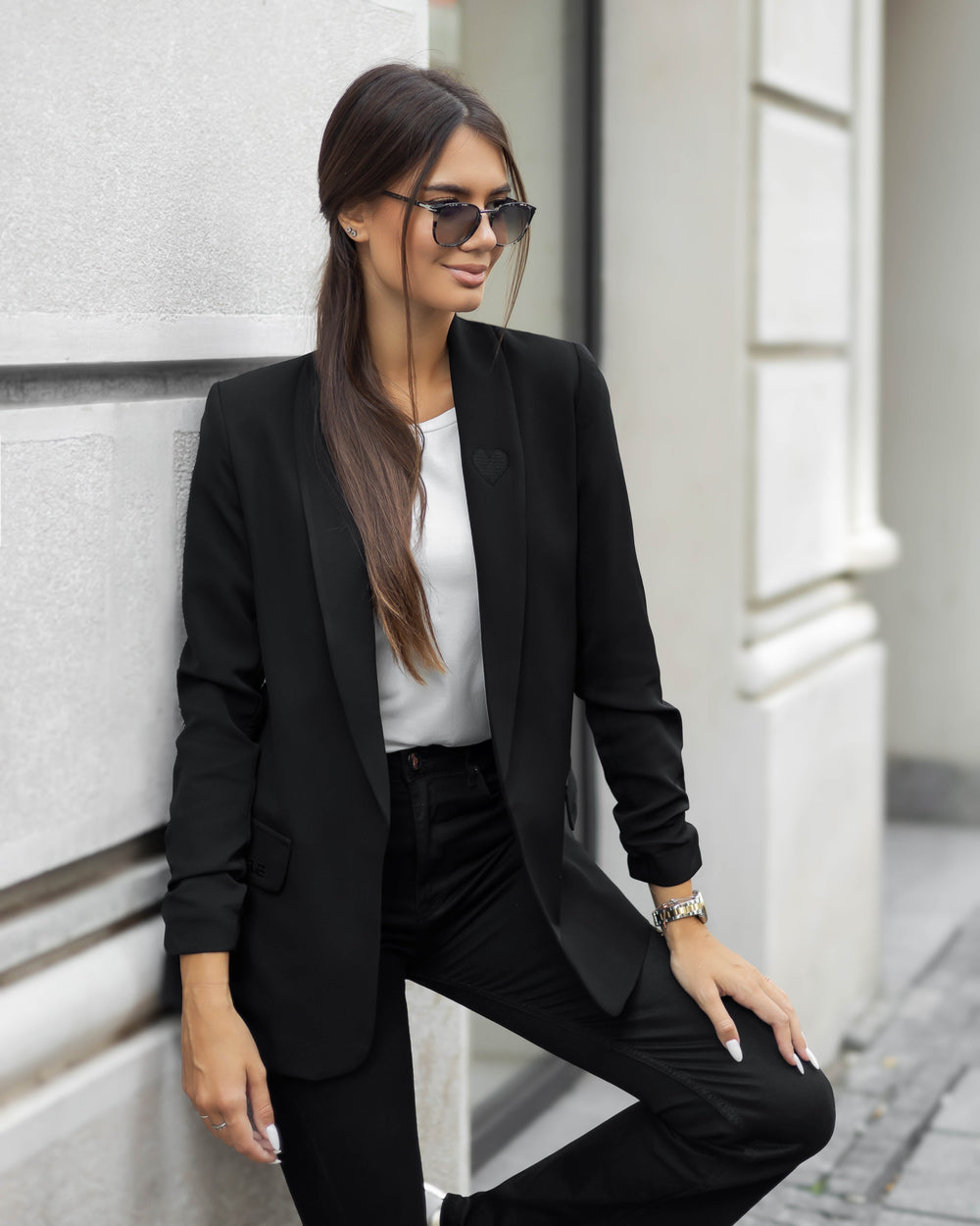Sako za sve sezone u crnoj boji, nosiv u poslovnim i svakodnevnim prilikama! Predstavlja komad koji je potreban svačijem garderoberu i bezbroj je kombinacija u kojima ga možete uklopiti! Ovaj model ima svedenu formu, dužeg je kroja a rukavi su naborano sašiveni kako bi imao i notu ležernosti. Kompletno je postavljen, ima naramenice i vezene detalje na sebi. Dužina sakoa 72 cm, dužina rukava 56 cm. Rukavi su ušiveni tako da se nose nabrano.