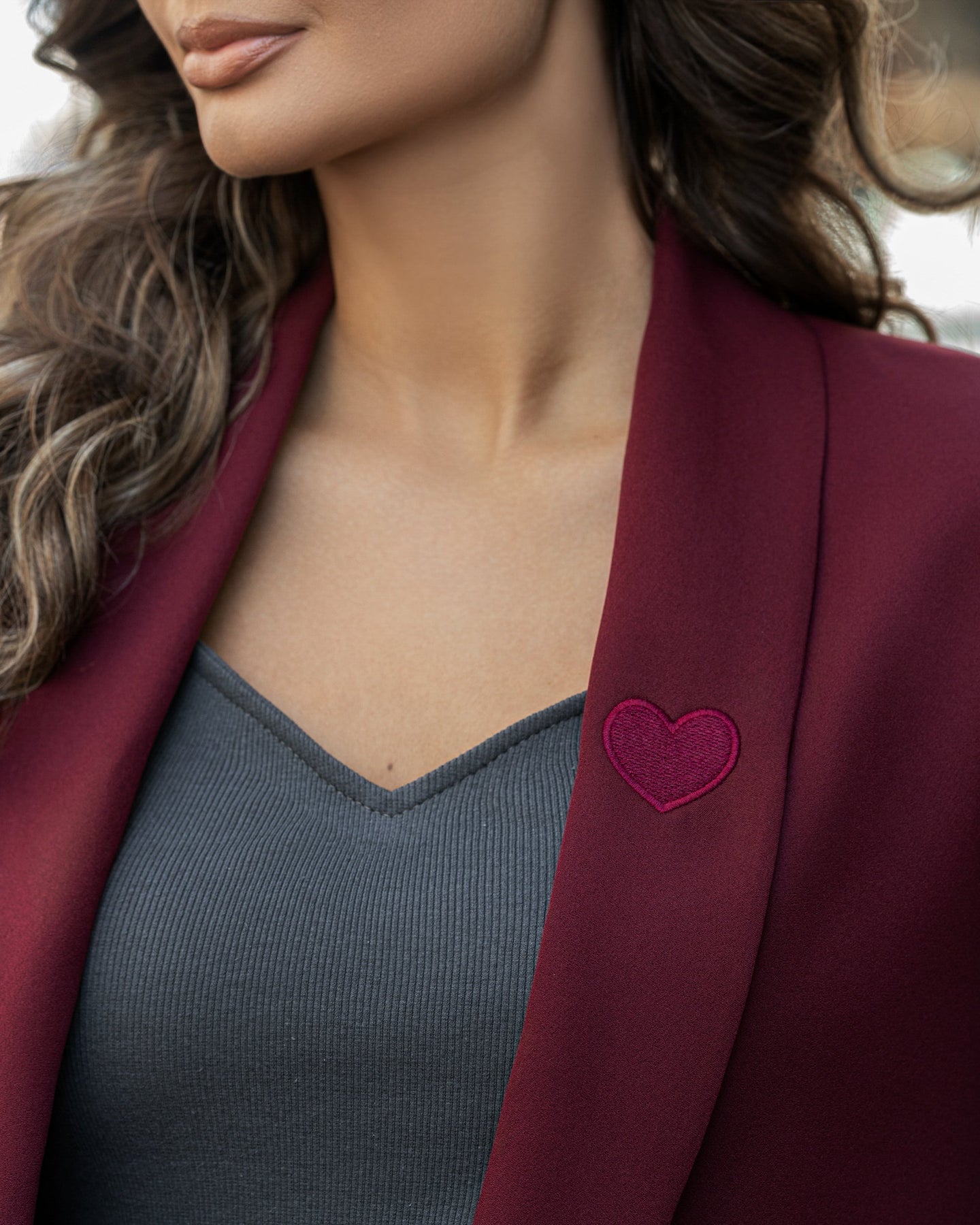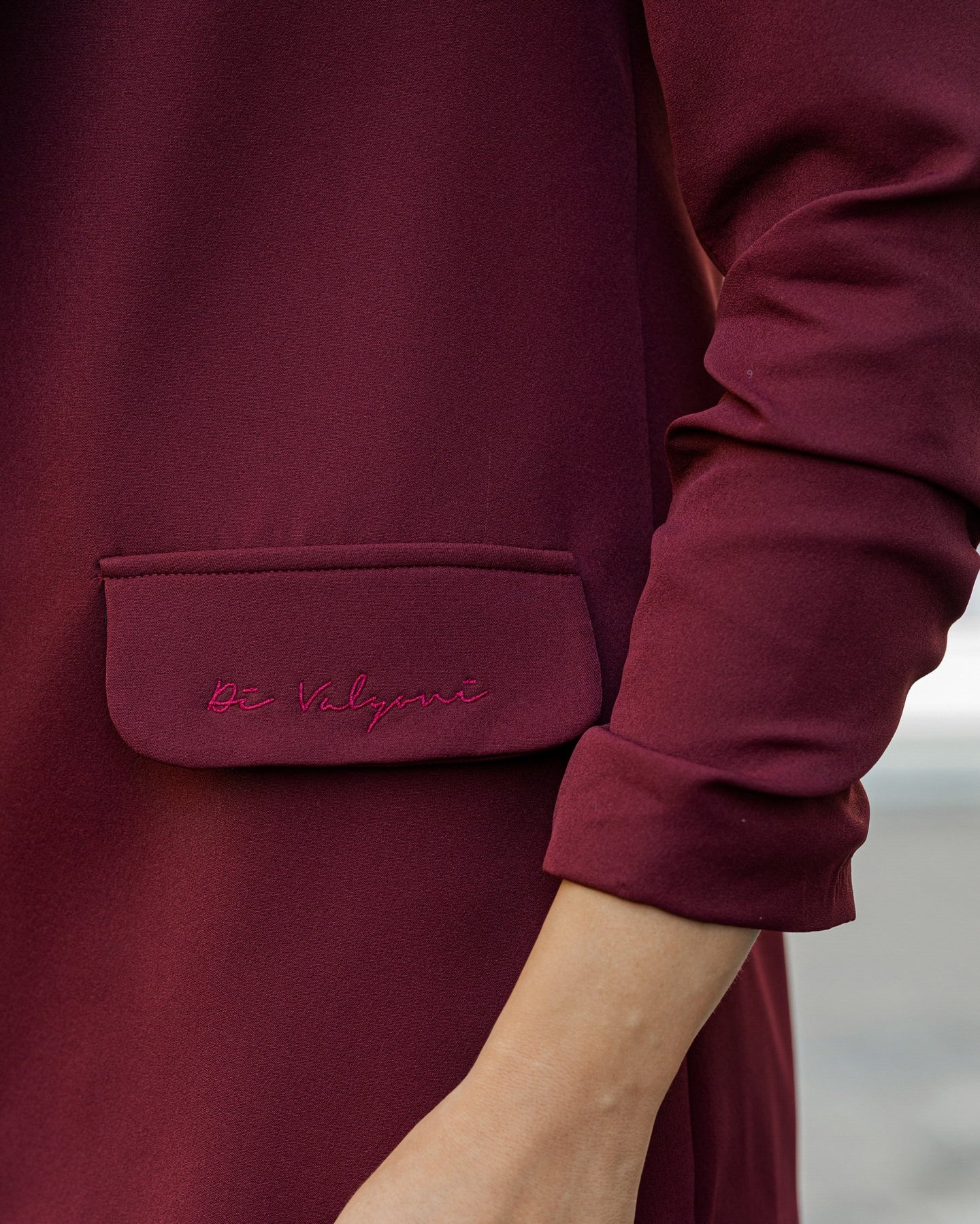 Sako za sve sezone u bordo boji, nosiv u poslovnim i svakodnevnim prilikama! Predstavlja komad koji je potreban svačijem garderoberu i bezbroj je kombinacija u kojima ga možete uklopiti! Ovaj model ima svedenu formu, dužeg je kroja a rukavi su naborano sašiveni kako bi imao i notu ležernosti. Kompletno je postavljen, ima naramenice i vezene detalje na sebi. Dužina sakoa 72 cm, dužina rukava 56 cm. Rukavi su ušiveni tako da se nose nabrano.
